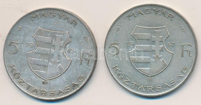 1947. 5Ft Ag "Kossuth" (2x) T:2-