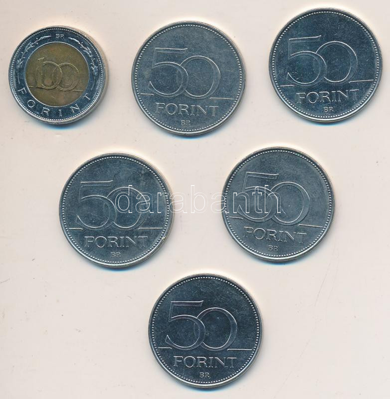 https://www.darabanth.com/en/207-Online-auction/207.0/Numismatics/Hungarian-metal-and-silver-coins~200010/2004-2007-50Ft-5xklf-plus-2002-100Ft-Kossuth-T2~II835600