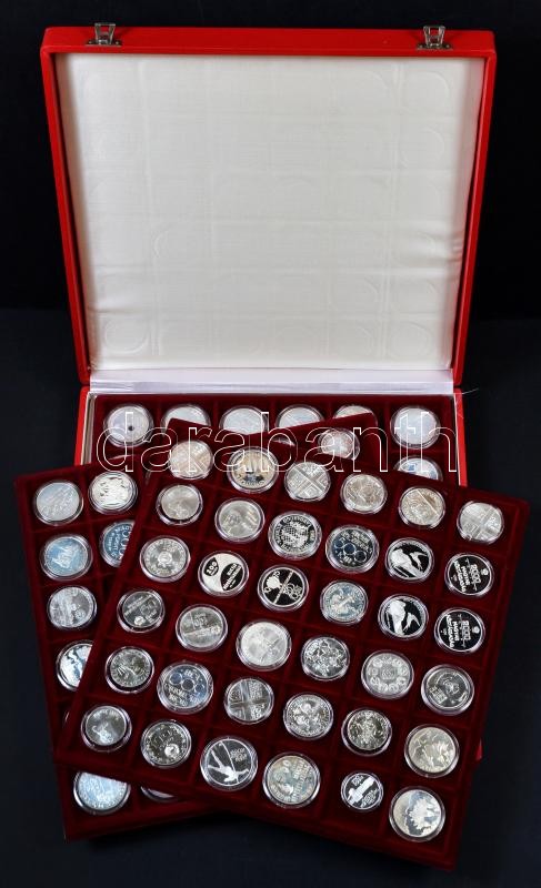 Large collection: 108 pieces of Ag commemorative coins and medallions in red leatherette cassette, the complete proof "Painters series" in case, 81 mainly Ag commemorative coins with two Au coins: 1990. 5000 Forint Au "Matthias Corvinus" + 1994. 5000 Forint Au "Threatened fauna - Great Bustard" C:PP,BU,1