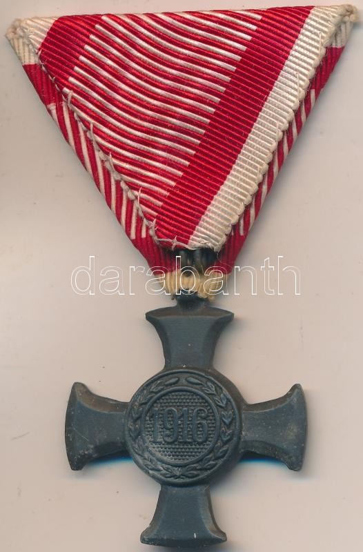 1916. "Vas Érdemkereszt a Vitézségi Érem szalagján" sherardírozott vas... https://www.darabanth.com/en/207-Online-auction/207.0/Numismatics/Military~200017/1916-Vas-Erdemkereszt-a-Vitezsegi-Erem-szalagjan-sherardirozott-vas-kituntetes-T1--3Cbr3E~II841491
