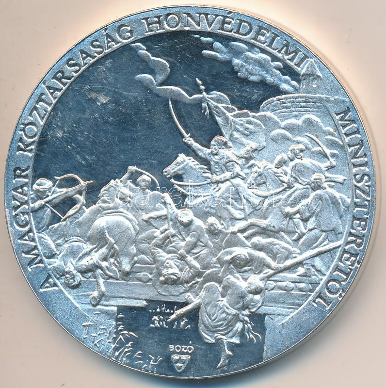 Bozó Gyula (1913-2004) "A Magyar Köztársaság Honvédelmi Miniszterétől" ezüstözött Br emlékérem (60mm) T:exPP
