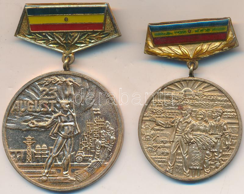 Description: Románia 1984. "A felszabadulás 40. évfordulója" Br kitüntetés + 1987. "A mezőgazdasági kollektivizálás befejeződésének 25. évfordulójára" Br kitüntetés T:2