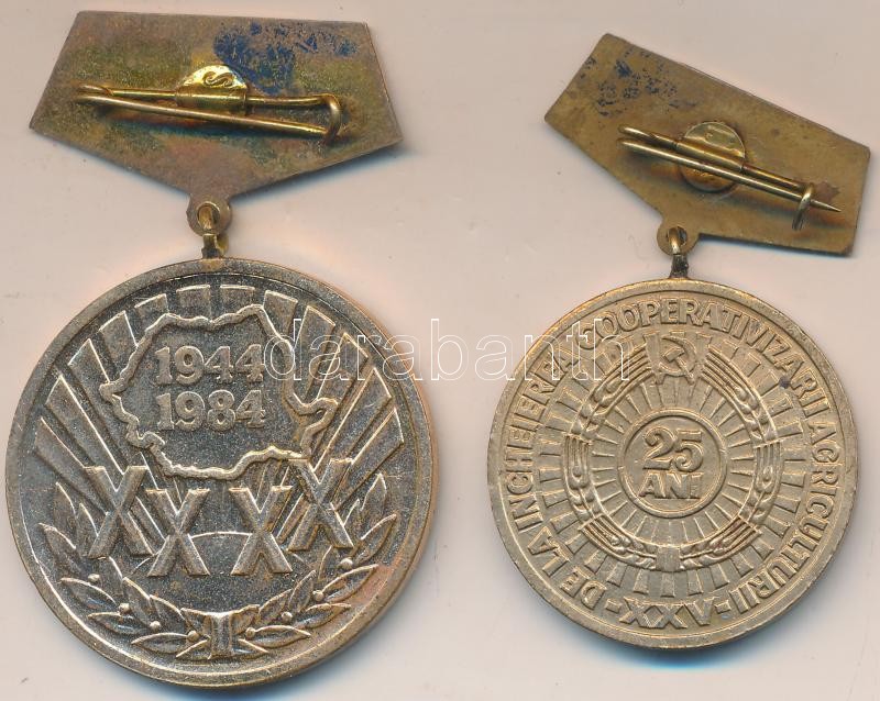 Románia 1984. "A felszabadulás 40. évfordulója" Br kitüntetés + 1987. ... https://www.darabanth.com/en/207-Online-auction/207.0/Numismatics/Military~200017/Romania-1984-A-felszabadulas-40-evforduloja-Br-kituntetes-plus-1987-A-mezogazdasagi-kolle~II842577