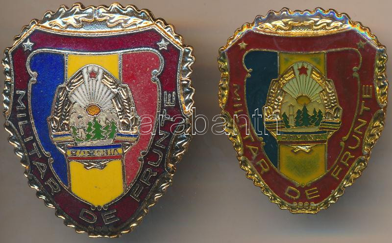 Description: Románia ~1960. "Katonai kiválóság" (2xklf) katonai akadémiai jelvény, egyik aranyozott, zománcozott T:2