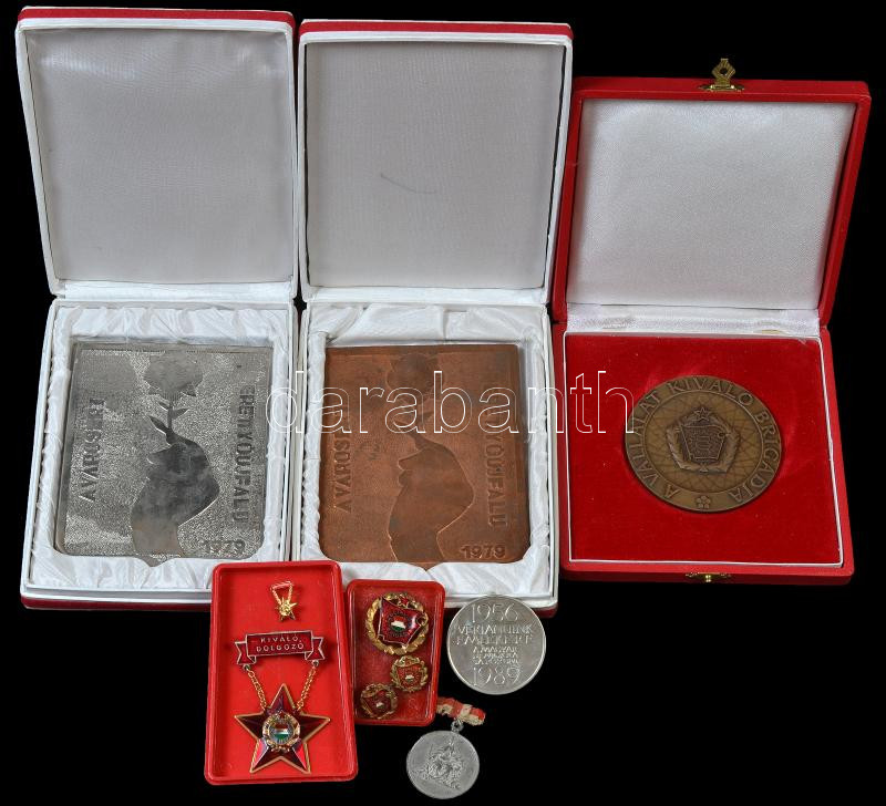 Vegyes szocialista kitüntetés, plakett és emlékérem tétel tokokkal, kö...