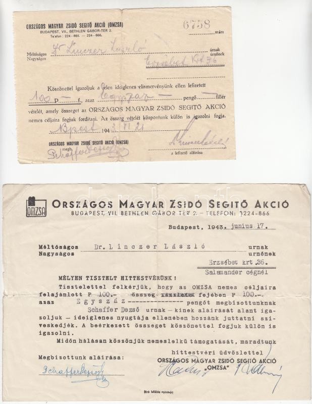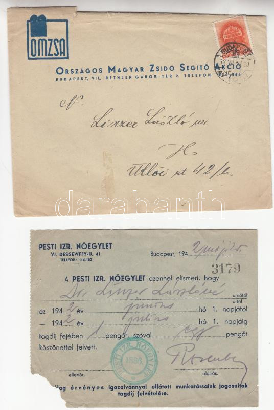 https://www.darabanth.com/en/207-Online-auction/207.0/Numismatics/Numismatics-documents-and-letters~200005/1942-1943-Orszagos-Magyar-Zsido-Segito-Akcio-plus-Pesti-Izraelita-Noegylet-fizetesi-felszo~II794582