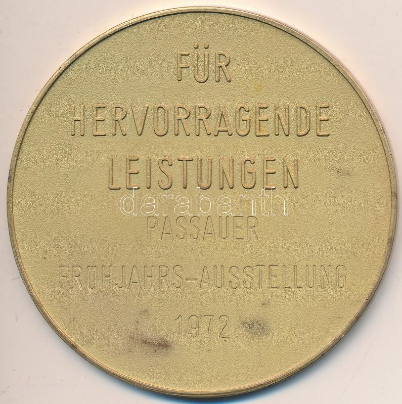 Description: Németország 1972. Passau-i Kiállítás "Fachschau des Hotel- und Gaststätten-Gewerbes / Für Hervorragende Leistungen" aranyozott Br emlékérem (80mm) T:2