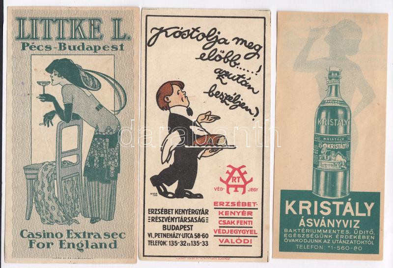 cca 1920 3 db számoló cédula (Littke L. Casino Extra sec For England, Erzsébet Kenyérgyár, Kristály ásványvíz)