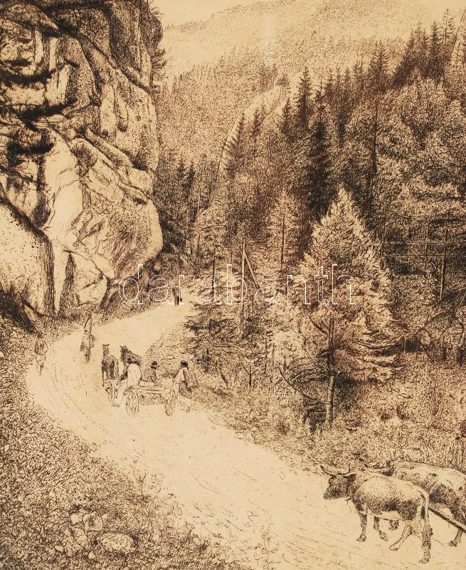 Dudás Jenő (1900-1991): Hegyek között. Rézkarc, papír, jelzett, üvegez...