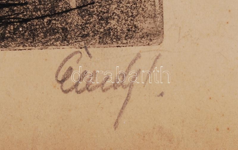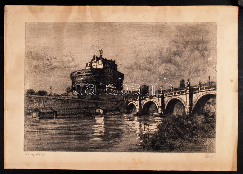 Élesdy István (1912-1987): Angyalvár, rézkarc, papír, jelzett, 33×48,5...