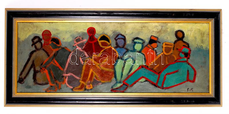 G.F. jelzéssel: Színes alakok. Olaj, farost, jelzett, fa keretben, 65×...