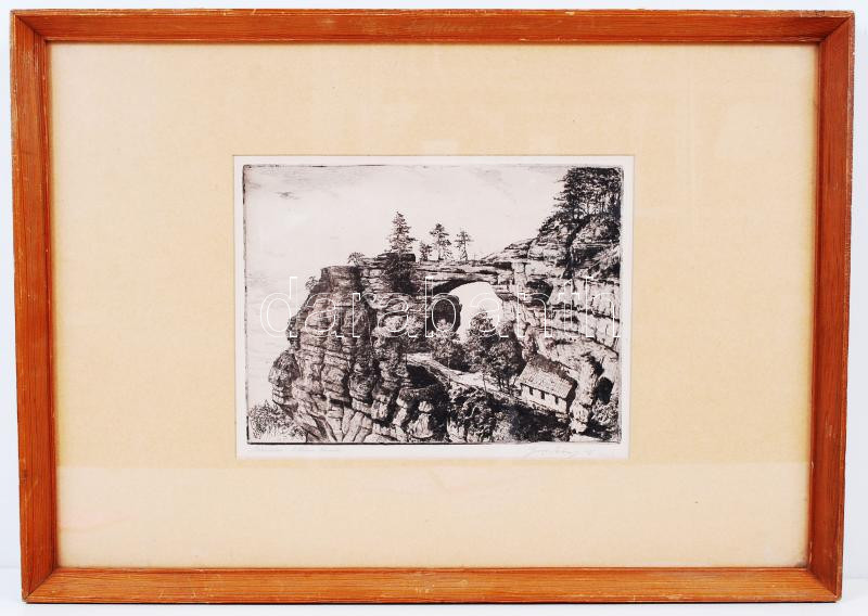 Georg Jahn: Schweiz. Rézkarc, papír, jelzett, üvegezett keretben 18×25 cm
