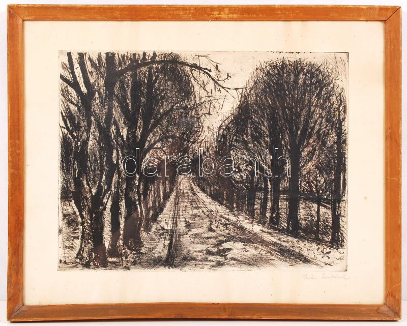 Iván Szilárd (1912-1988): Fasor. Rézkarc, papír, jelzett, 29×40 cm