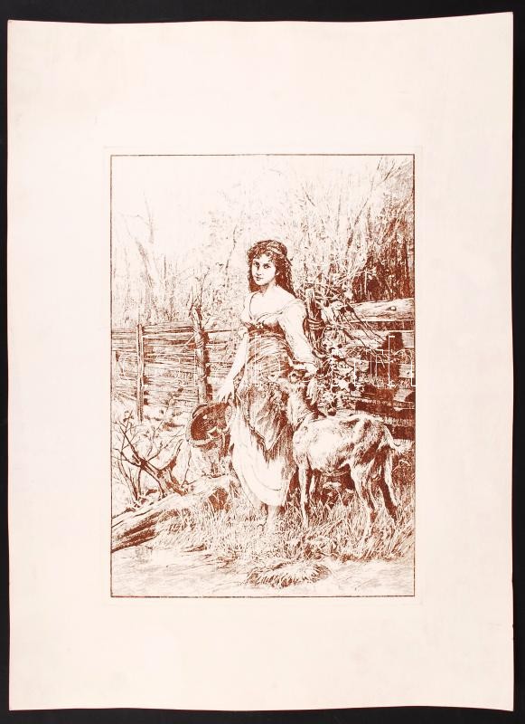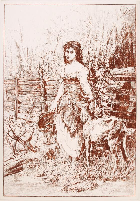 Jelzés nélkül: Leány kecskével. Rézkarc, papír, 36×27 cm