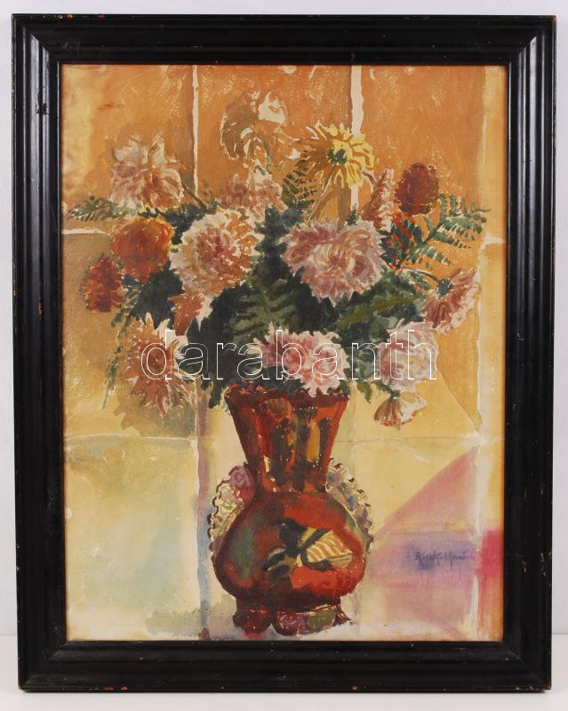 Koszkol jelzéssel: Virágcsendélet. Akvarell, papír, üvegezett keretben 60×46 cm