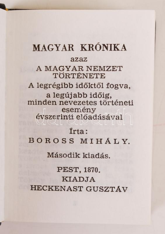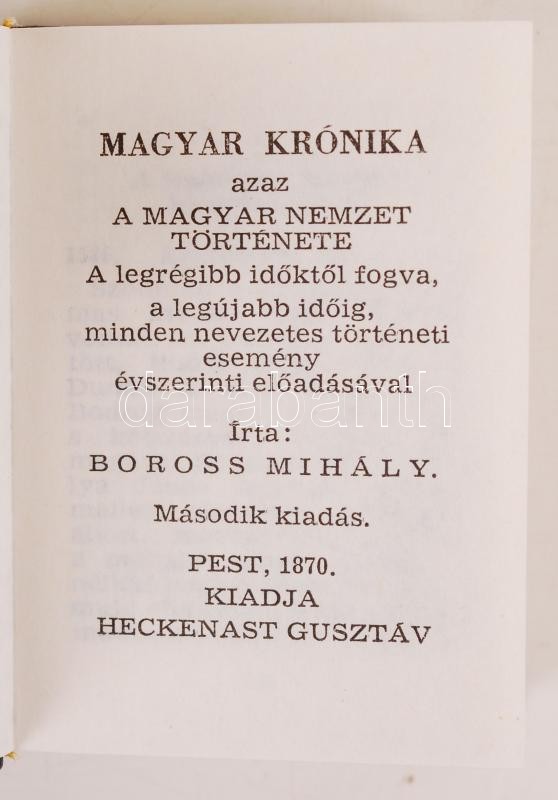 Boross Mihály: Magyar Krónika I-III. Pest, 1870, Heckenast Gusztáv. Reprint minikönyv, kiadói műbőr kötés, újszerű állapotban.