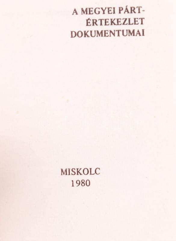 Kovács Mihály-Porkoláb Albert: A Borsod megyei pártértekezlet dokument... https://www.darabanth.com/en/207-Online-auction/207.0/Other-collectibles/Books-Minibooks~600039/Kovacs-Mihaly-Porkolab-Albert-A-Borsod-megyei-partertekezlet-dokumentumai-Miskolc-1980-Mini~II838787
