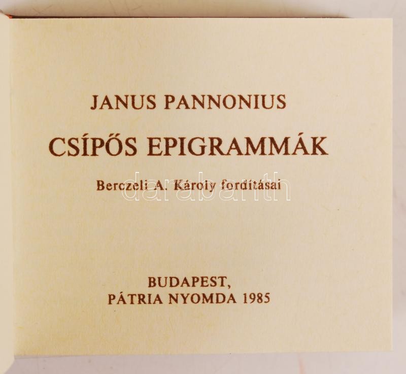 https://www.darabanth.com/en/207-Online-auction/207.0/Other-collectibles/Books-Minibooks~600039/Pannonius-Janus-Csipos-epigrammak-Bp-1985-Patria-Minikonyv-63-szamozott-peldany-il~II835705