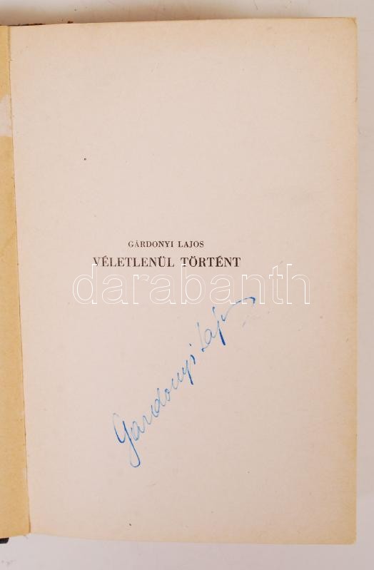 https://www.darabanth.com/en/207-Online-auction/207.0/Other-collectibles/Books-Other-rarities~600040/Gardonyi-Lajos-Veletlenul-tortent-Bp-1942-Gardonyi-Dedikalt-Felvaszon-kotes-enyhe~II837154