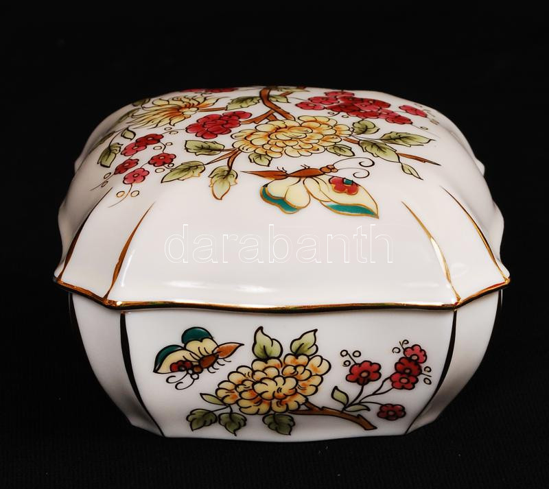 Zsolnay pillangó mintás bonbonier, kézzel festett, jelzett, hibátlan, 11×11 cm / Handpainted numbered Zsolnay chinaware bonbonier