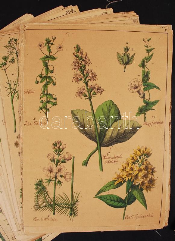 cca 1880 Növények; 47 db, vászonra készült színezett fametszet felirat...
