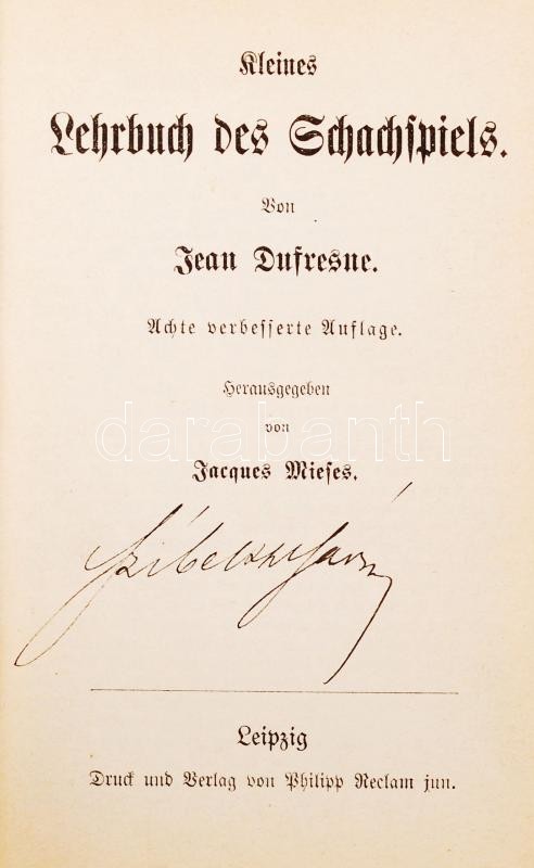 Dufresne, Jean: Lehrbuch des Schachspiels. Achte verbesserte Auflage. ... https://www.darabanth.com/en/207-Online-auction/207.0/Other-collectibles/Foreign-language-books~600038/Dufresne-Jean-Lehrbuch-des-Schachspiels-Achte-verbesserte-Auflage-Leipzig-1910-Philipp-Reclam~II842503