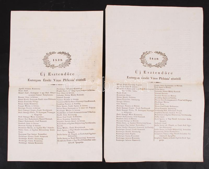 https://www.darabanth.com/en/207-Online-auction/207.0/Other-collectibles/Printed-Materials~600026/1839-1840-Esztergom-Esztergom-Erseki-Varos-Plebania-egyhazkozsegi-tagok-nevsora-2-db~II836618