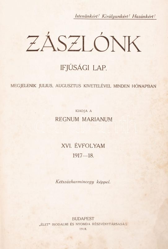 1917-1918 Zászlónk, Ifjúsági lap, kiadja a Regnum Marianum, XVI. évfolyam, 231 képpel, 207p.