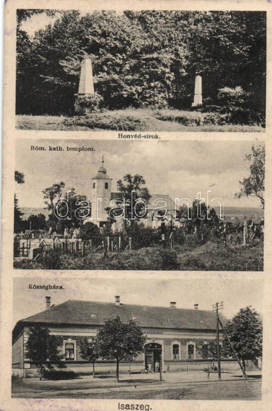 Isaszeg, honvéd sírok, katolikus templom, községháza (fl)