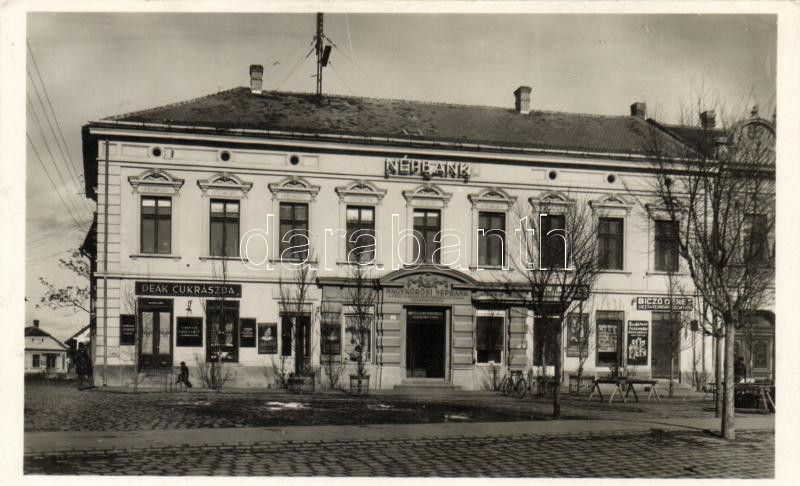 Nagykőrös, Népbank, Deák cukrászda, Biczó Dénes üzlete