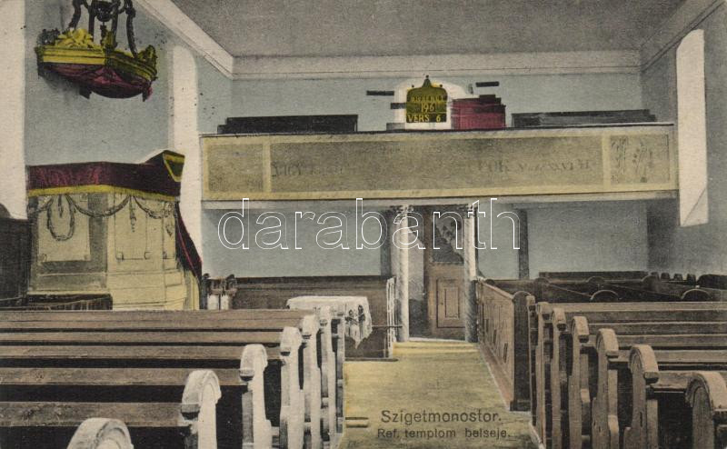 Szigetmonostor, Református templom belseje, Bajcsi István kiadása