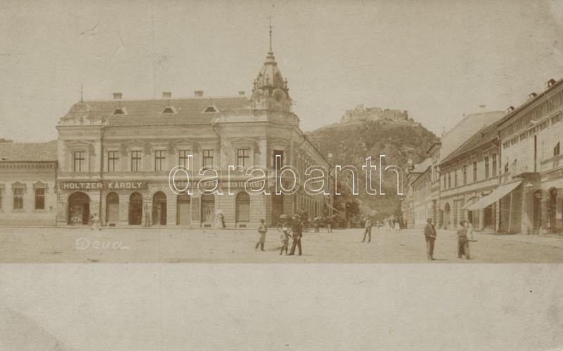 Déva, Főtér, Fehér Kereszt szálloda, Holtzer Károly és Hirsch kereskedései / main square, hotel, shops; photo