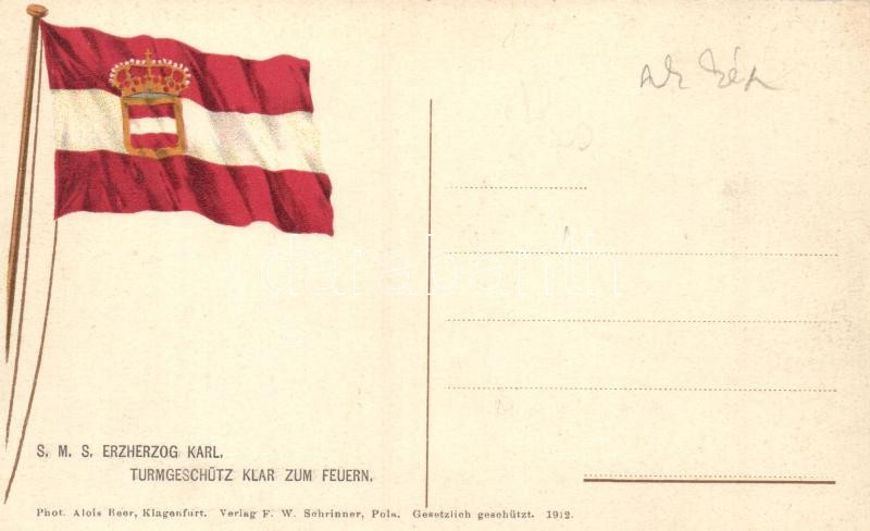 SMS Erzherzog Karl, K.u.K. navy litho flag on backside