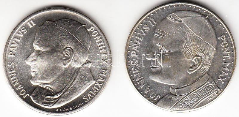 Description: Olaszország DN "II. János Pál pápa / Czestochowa" ezüstözött fém emlékérem (35mm) + Vatikán DN "II. János Pál pápa" ezüstözött fém emlékérem. Szign.: A. CON SONNI (34,5mm) T:2
