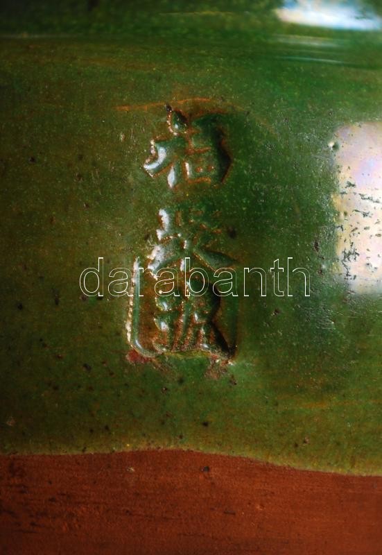Kínai kerámia edény, jelzett, m:9,5 cm