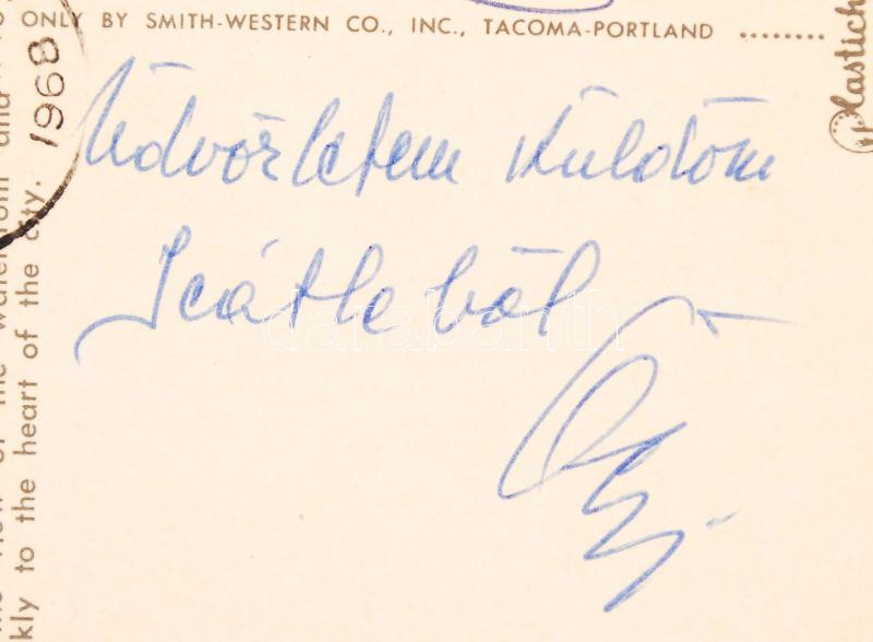1968 Puskás Ferenc (1927-2006) saját kézzel írt képeslapja Sebes Guszt...