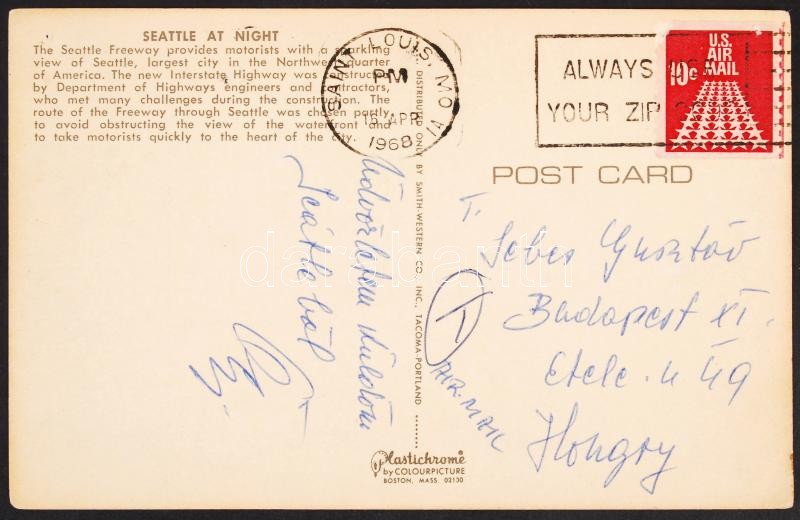 1968 Puskás Ferenc (1927-2006) saját kézzel írt képeslapja Sebes Gusztáv szövetségi kapitánynak az USA-ból / Autograph written postcard