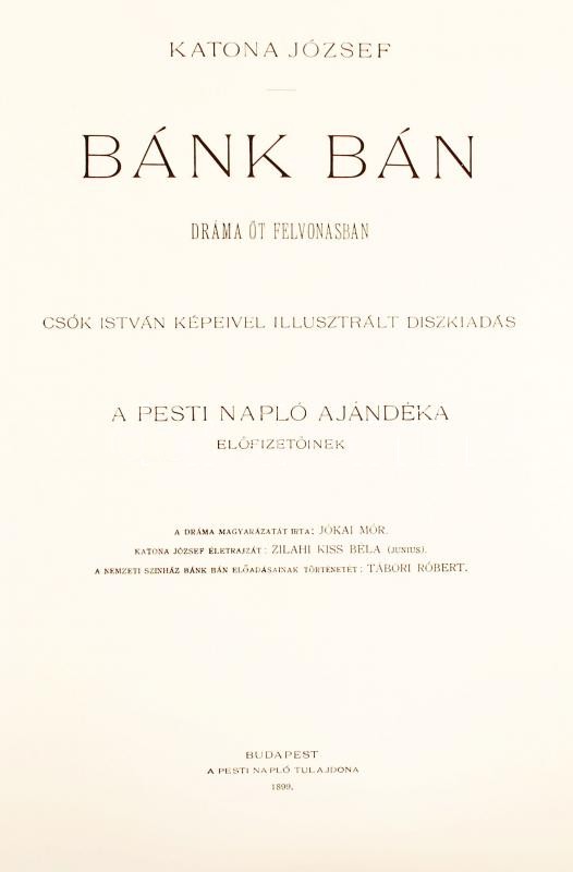 Katona József: Bánk bán. Dráma öt felvonásban. Csók István képeivel il... https://www.darabanth.com/en/208-Online-auction/208.0/Other-collectibles/Books-Other-rarities~30040/Katona-Jozsef-Bank-ban-Drama-ot-felvonasban-Csok-Istvan-kepeivel-illusztralt-diszkiadC3~II846520