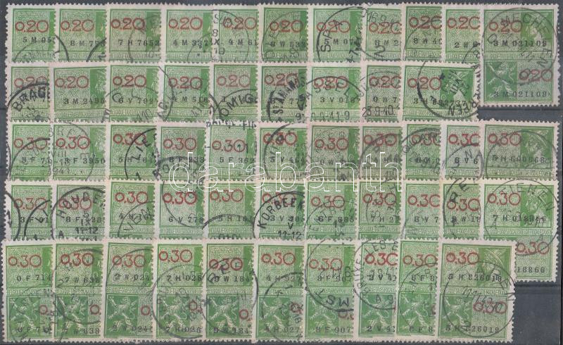 Belgium 52 db 20c és 30c illetékbélyeg szinte mind más olvasható bélyegzéssel