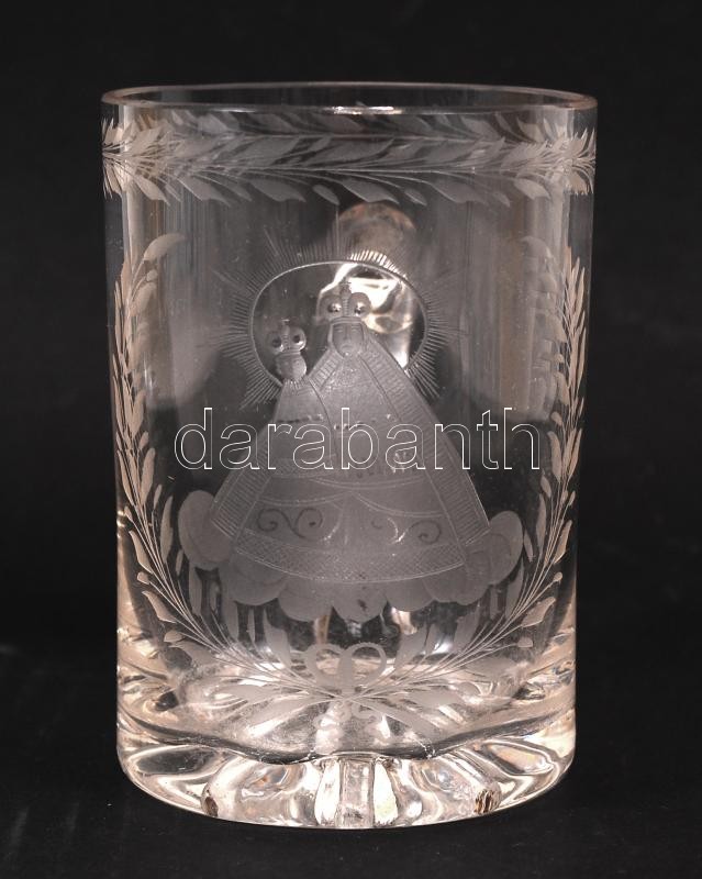 Máriacelli füles emlék pohár, sav maratott, hibátlan, m:9 cm