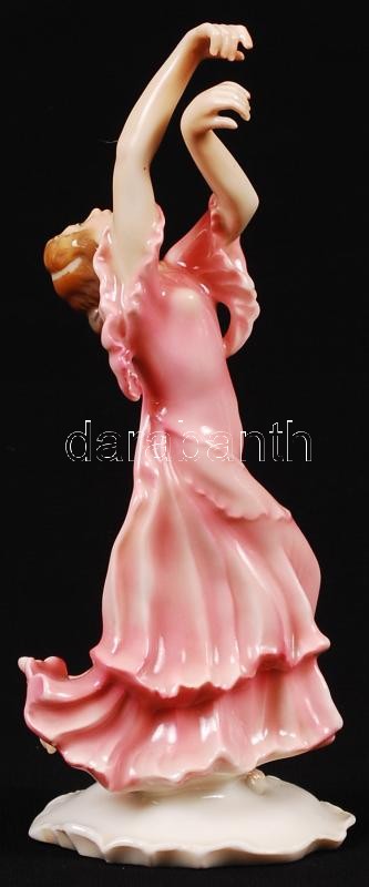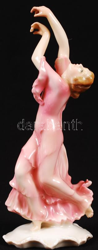 Ens táncoló lány, kézzel festett, jelzett, restaurált, m:22,5 cm