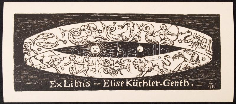 Hans Thoma (1839-1924): Ex libris. Klisé nyomat. Dúcon jelzett / wood engraving
