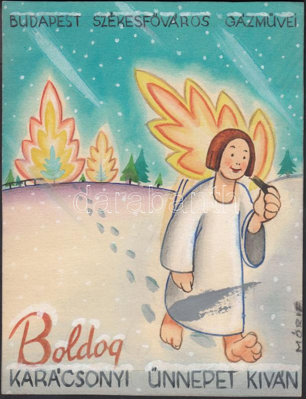 Móri F. jelzéssel: Fővárosi Gázművek reklámplakát terv. Akvarell papír...