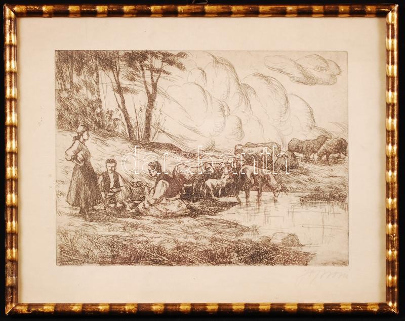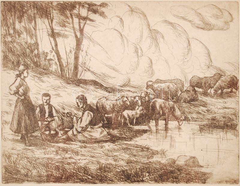 azonosítatlan jelzéssel: Birkanáyj. Rézkarc, papír. Jelzett, 17x24 cm ...
