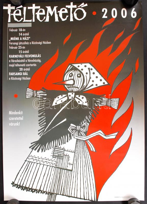 2006 Téltemető feliratú, farsangi bált hírdető plakát, tekercsben, 68x...