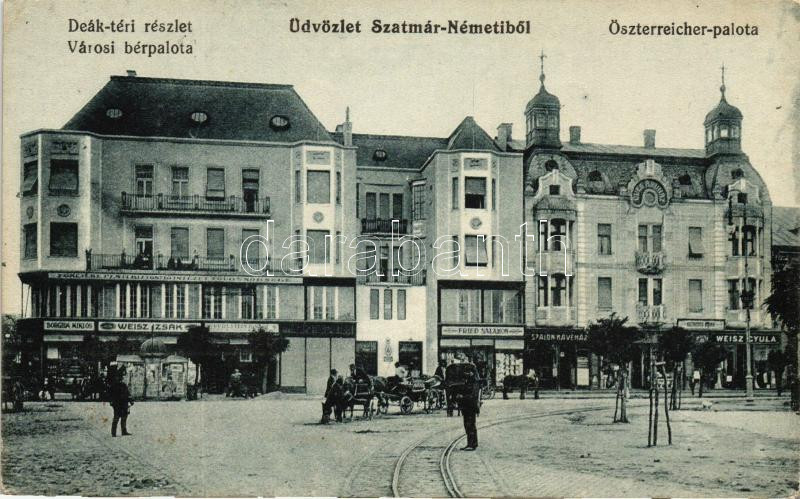 Szatmárnémeti, Deák tér, Városi bérpalota, Österreicher palota, üzlete...