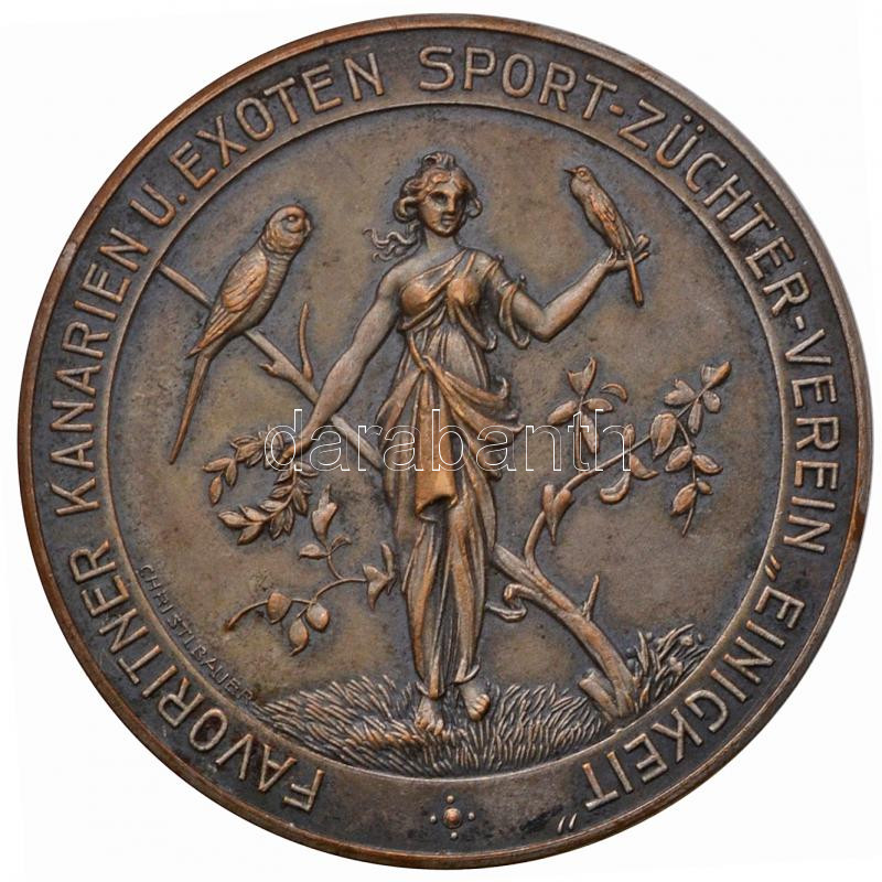 Ausztria ~1900. "'Egység' Favoritner Kanári és Egzotikus Madár Sporttenyésztő Egyesület / Érdemekben gazdag teljesítményért" ezüstözött Br emlékérem. Szign.: Christlbauer (44mm) T:2-