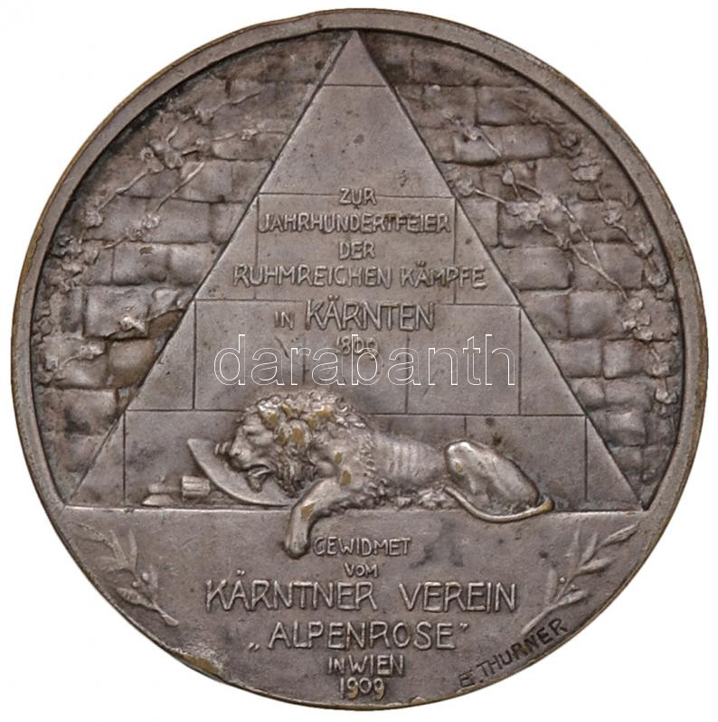 Ausztria / Bécs 1909. "A dicsőséges karintiai harcok századik évfordulójára 1809" ezüstözött Br emlékérem peremen jelzéssel. Szing.: E. Thurner (36mm) T:2,2-