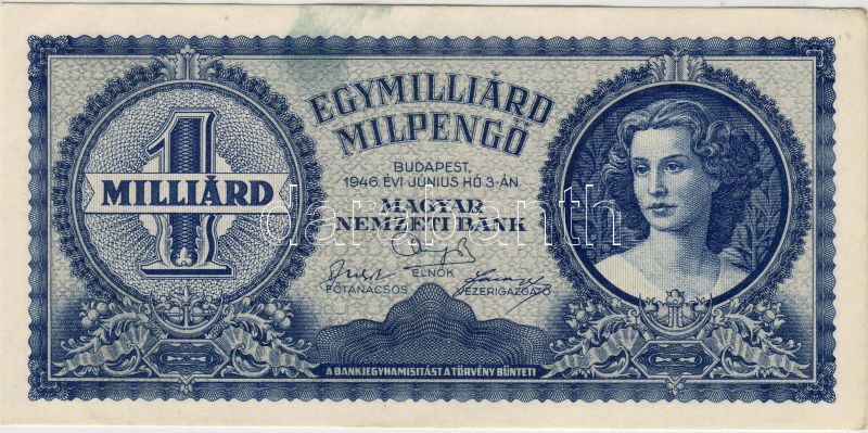 1946 1.000.000.000Milpengő rajta a kék festék elmázolódva ! T:I