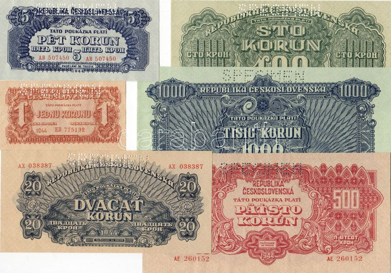 https://www.darabanth.com/en/21-Online-auction/21.0/Numismatics/~136/Csehszlovakia-1945-1K-5K-20K-100K-500K-1000K-Moszvai-kadas-Specimen-lyukasztassal-TI~II39243